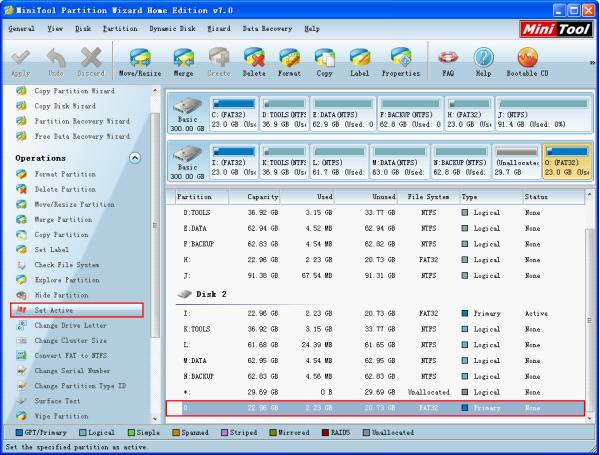 This is the main interface of MiniTool Partition Wizard. We should select the partition that will be activated and click "Set Active". The following interface will appear.