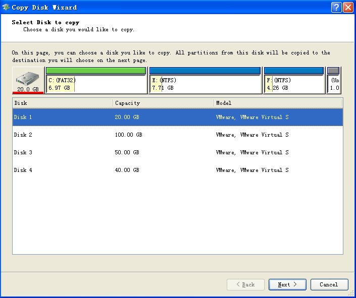 If you want to clone "Disk 4", select "Disk 4" and click "Next".