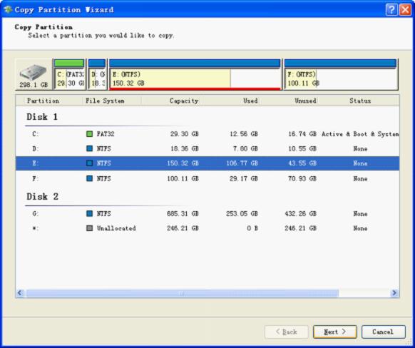 In the main interface, we can see 2 functional modules. To clone a hard drive, we should choose "Partition to Partition" module. Then, the following interface will emerge:
