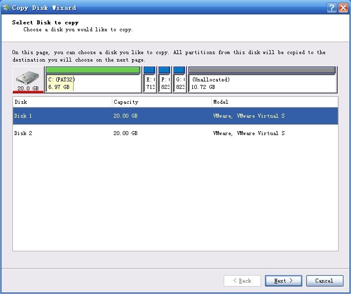 We choose " Disk 1" to be backed up and click "Next".
