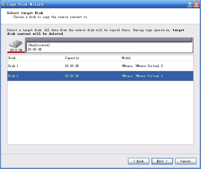 Choose " Disk 2" to be target disk and click "Next".
