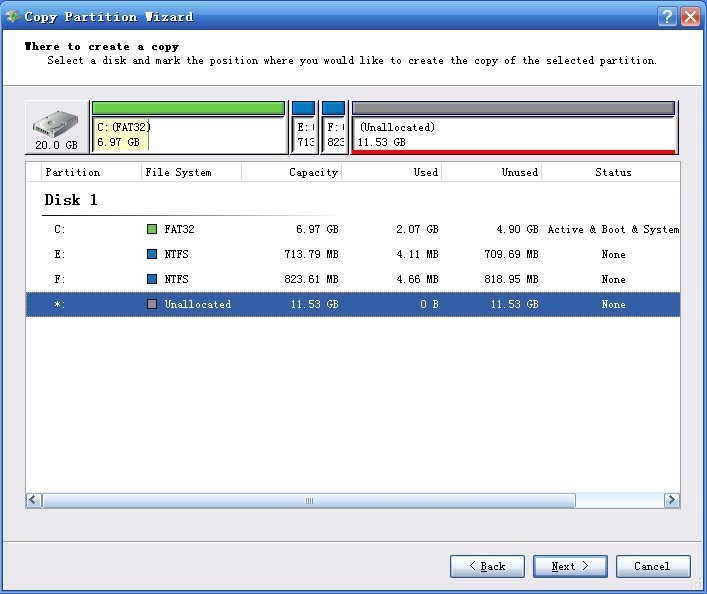 Select unallocated space and click "Next":